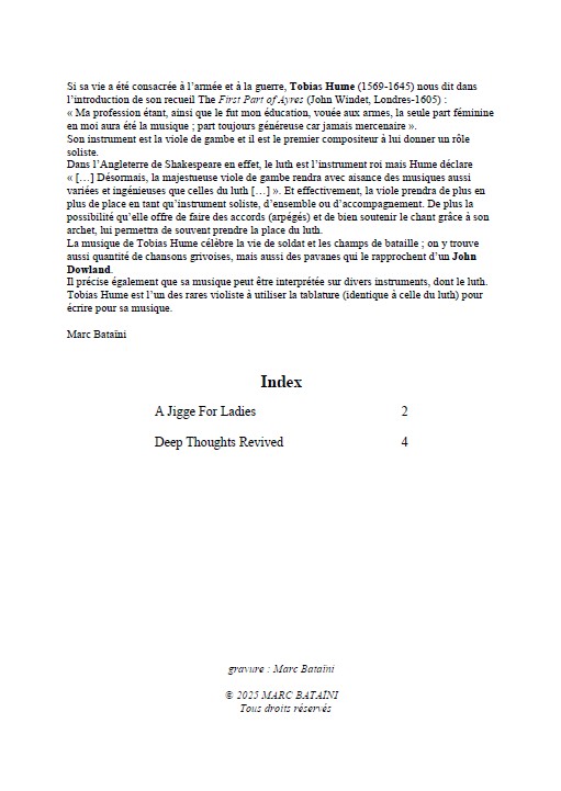 Tobias Hume pièces pour 3 violes – transcription pour 3 guitares Marc Bataïni – 4 p – PDF – MB 32
